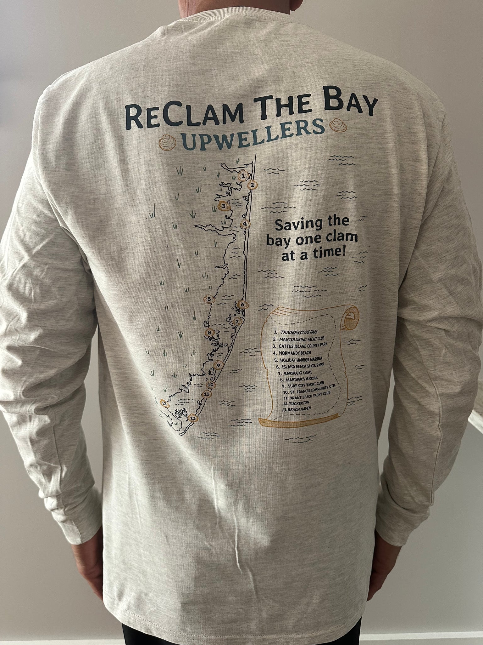 Also available is our "Upweller Map" showing the approximate locations of our 13 Upwellers! Great long sleeve shirt designed and printed by Jetty. Comes in Heather Oatmeal. From out first upweller location established in 2005 to our most resent location in Normandy Beach, this design is a treasure map for sure. 99% Cotton/1 % Viscose
